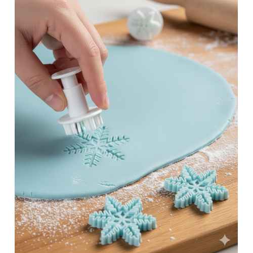 Cut out Snowflakes without pressing the plunger then using the plunger, eject the Snowflake on to a flat surface to create the embossing effect.