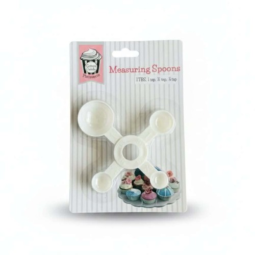 With assorted colors for easy organization, you will have measures for: 1 TBS ,1 tsp, 1/2 tsp, 1/4 tsp.